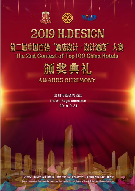 2019年第二届大赛评选,专为设计师及设计机构打造的品牌大奖。由国际国内酒店集团大咖和酒店院校专家评选出100位设计师和机构,并举办隆重的颁奖盛典!